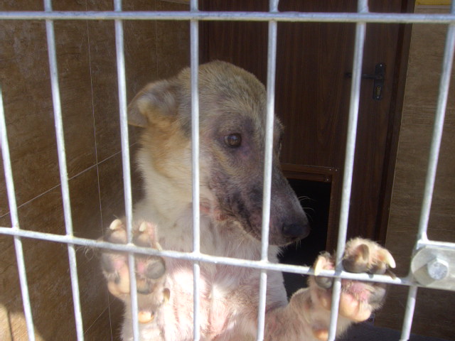 Esta perrita con cara de ANGEL es TRACEY, lleva varios meses en la perrera de Orihuela, con un problema enorme en la piel, tenia unas heridas impresionantes, una especie de sarna, aunque no contagiosa, que dejaba su piel en carne viva. Estaba muy mal, aunque la han tratado y ha mejorado mucho, en las primeras fotos se la puede ver como está ahora y en las tres últimas como estaba hace dos meses. TRACEY debe dormir sobre el duro cemento, y su maltrecho cuerpecito está ya muy resentido. además necesita los cuidados e higiene de una casa. TRACEY es un caso URGENTISIMO, no podemos dejarla allí o volverá a empeorar y no creo que salga de esa recaida. TRACEY es un verdadero ANGEL ,no os podeis imaginar lo dulce y buena que es.......