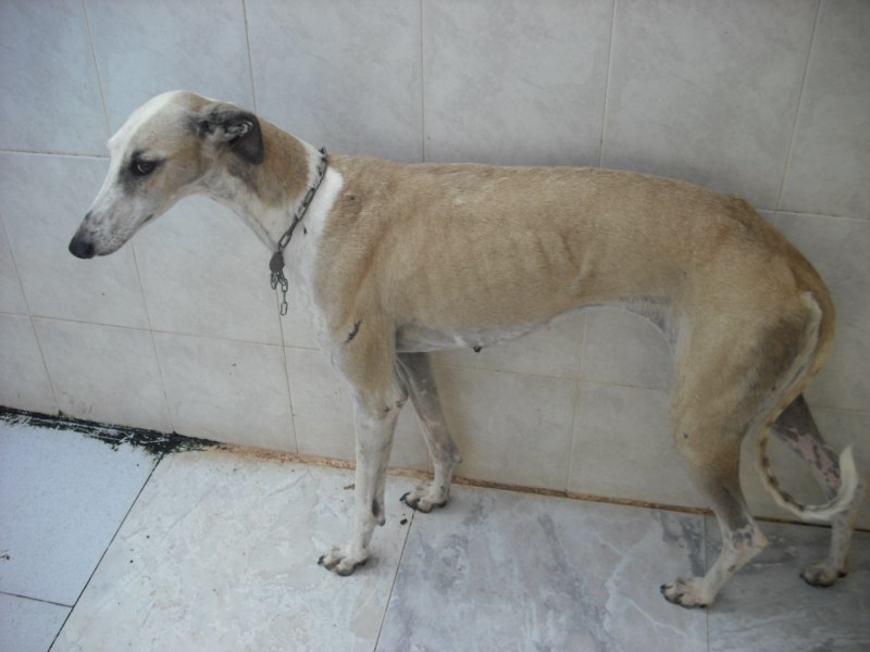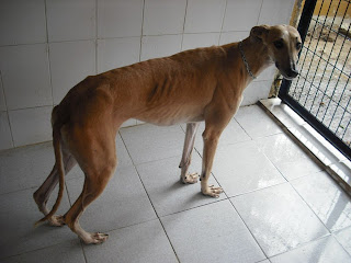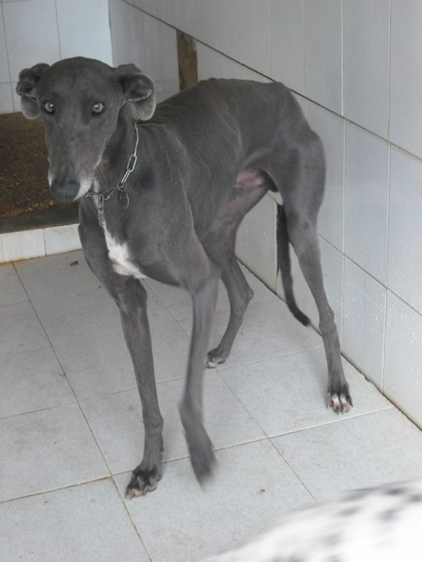 Rosca es una podenquita de apenas dos años. Hace casi uno que fue rescatada de la perrera y todavía sigue esperando su oportunidad en la guardería. Todos van saliendo y ella siempre permanece, por lo que se siente muy, muy triste. Es una perrita tranquila, ideal para personas sedentarias. En casa se porta muy bien y es dócil y cariñosa, eso sí, no se lleva muy bien con sus congéneres, por lo que tiene que ser "hija única", caninamente hablando.